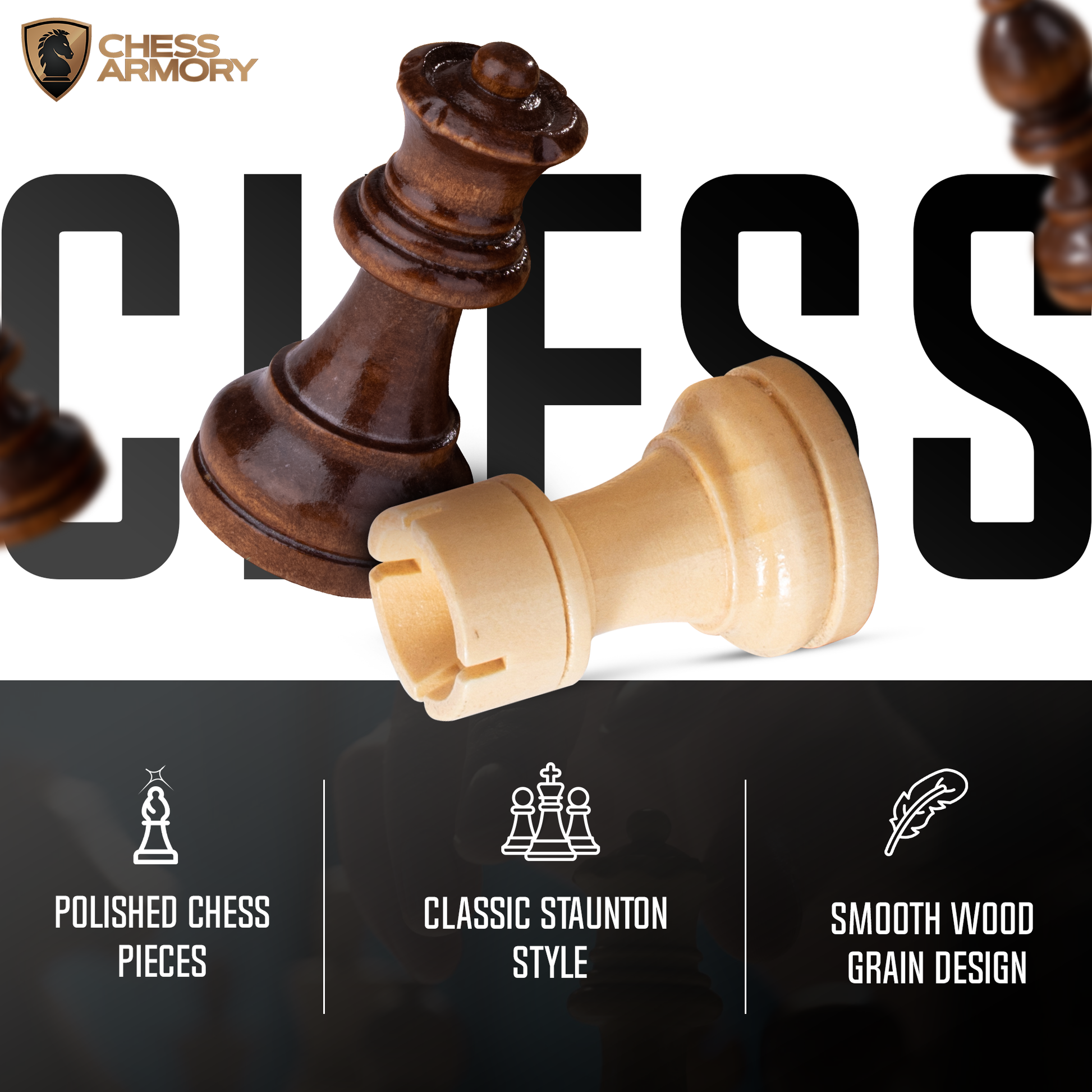 Chess Armory Premium Checkers and Chess Set - Wooden Board Game with a Portable Wood Case and Secure Storage for Pieces, Set for Kids and Adults (Beech Wood)