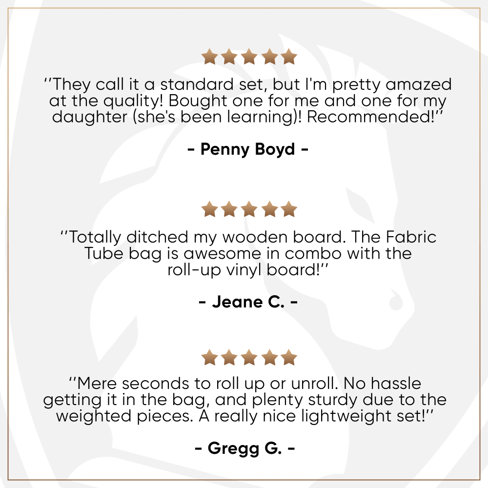 - CONVENIENT CANVAS CARRYING BAG - Anything could happen to your roll up chess set while you're on the move. Thankfully, our chess set roll up board and pieces come with a classy, durable canvas carrying bag, so your mobile tournament chess board set is easy to carry, safe and looking the part!