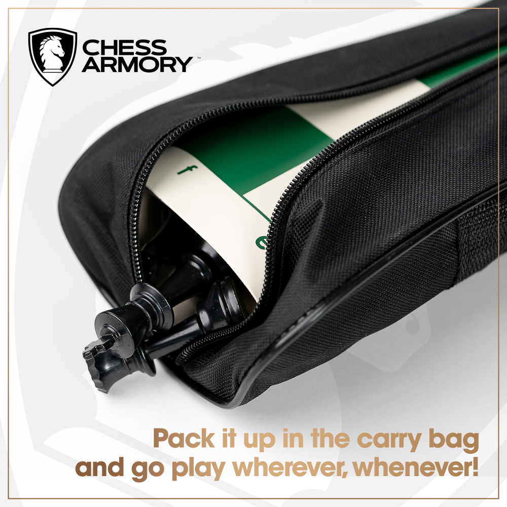 Chess Armory Tournament Chess Set with Canvas Carrying Bag - 17" On-the-go Portable Chess Set - Vinyl Roll Up Chess Board, Canvas Carrying Bag & Felted Chess Pieces - Play Chess Anywhere, Anytime!
